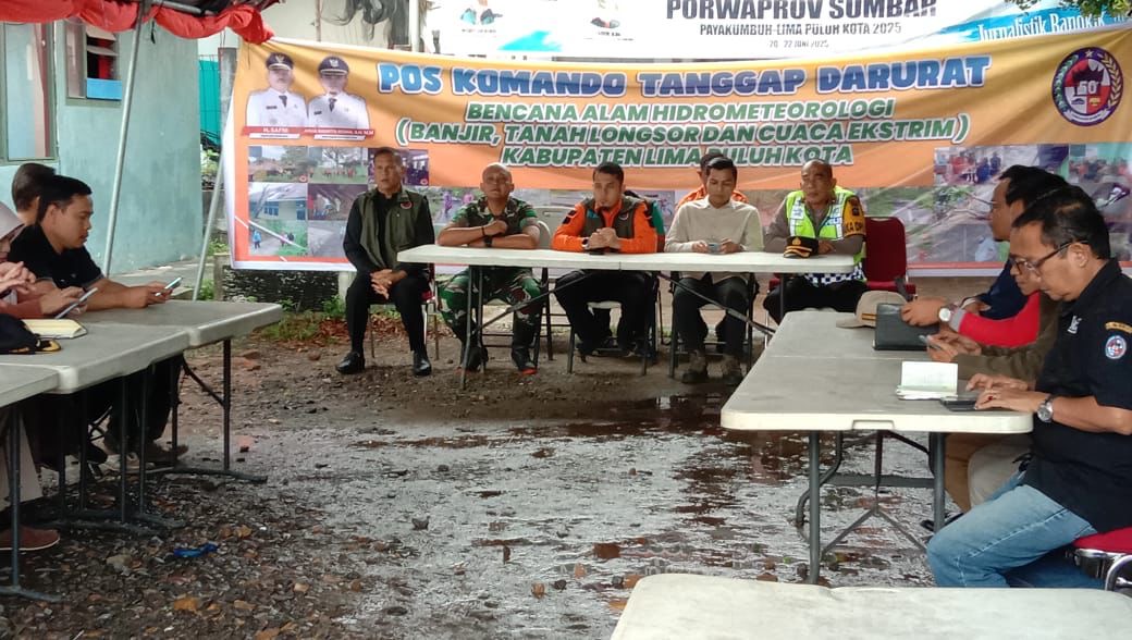 Wakil Bupati Lima Puluh Kota Ahlul Badrito Resha pimpin Rapat Koordinasi Penanganan Bencana Alam Banjir, Tanah Longsor dan Cuaca Ekstrem di Kabupaten Lima Puluh Kota bersama unsur-unsur terkait, di Pos Komando Tanggap Darurat Bencana Alam Hidrometeorologi (Banjir, Tanah longsor dan…