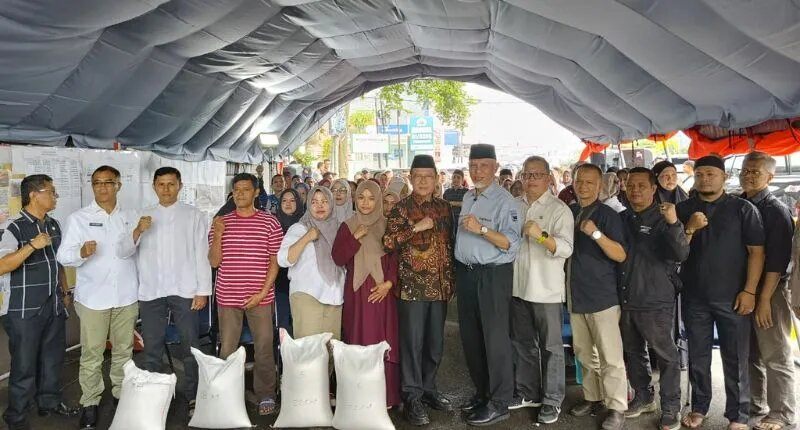 Pemerintah Provinsi (Pemprov) Sumatera Barat (Sumbar) melalui Gubernur Mahyeldi Ansharullah menyerahan bantuan beras Cadangan Pangan Pemerintah (CPP) sebanyak 4.104 kg, kepada pedagang yang terdampak bencana kebakaran Pertokoan Blok Barat Pasar Payakumbuh di Posko Kebakaran depan Kantor Pos Payakumbuh, Jumat (19/9/2025).