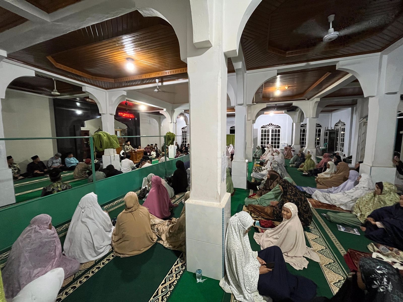 Kegiatan yang berlangsung setelah sholat tarawih ini diawali kajian dari Ustadz Dafri Harweli dengan tema “Dua Perkara yang Akan Memasukkan Kita Dalam Surga”