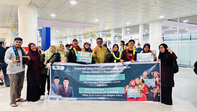 Siti Humaira Prayudi (18) dan Syaza Salsabila (17) dari SMAN 2 Payakumbuh berhasil meraih JUARA I kategori Rencana Usaha Fashion (Fesyen) dengan karya “Goldyra” dalam ajang Festival Inovasi dan Kewirausahaan Siswa Indonesia (FIKSI) 2025, yang diselenggarakan oleh Kementerian Pendidikan Dasar dan Menengah di Hotel Mercure Gatot Subroto, Jakarta Selatan, serta di SMESCO Gedung Kementerian UMKM pada Rabu, (30/10/2025).